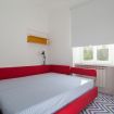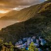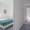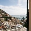 Appartamento con vista mare e sui tetti del borgo di Riomaggiore, composto da soggiorno open space con cucina, doppio balcone, camera matrimoniale con cabina armadio, cameretta a 2 letti e ampio bagno con doccia.